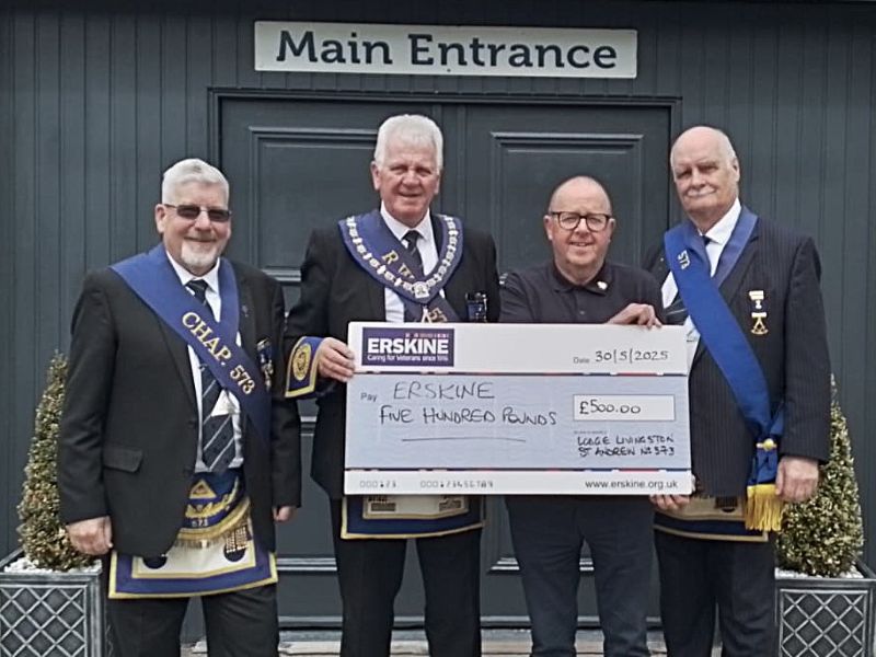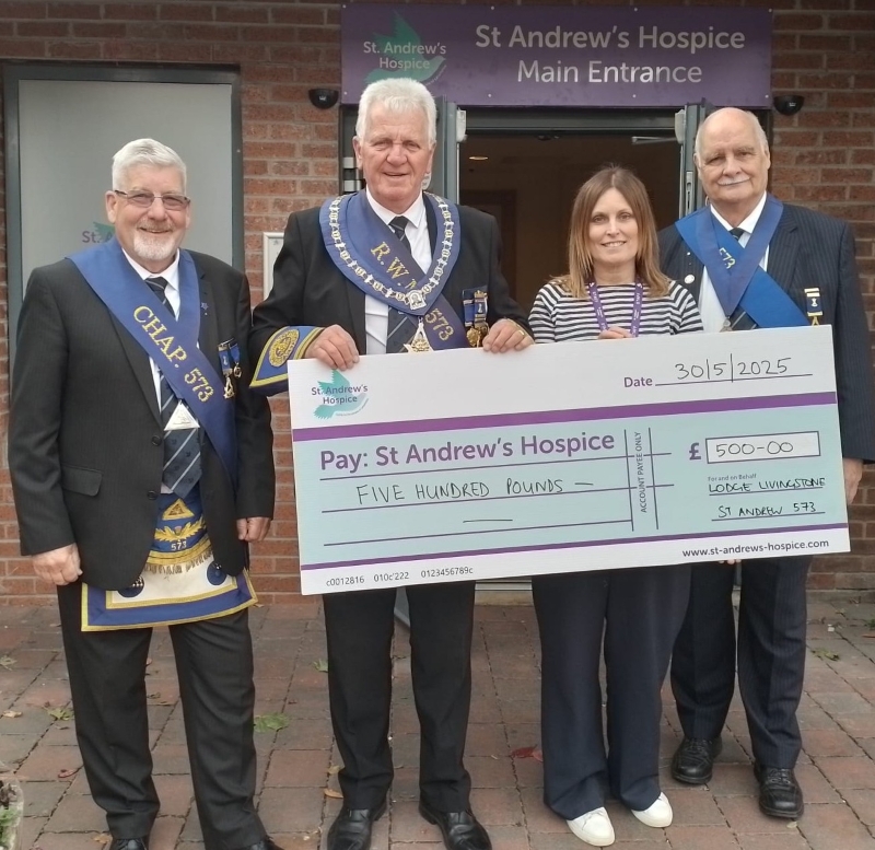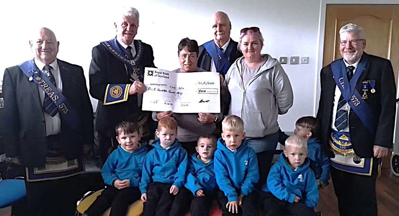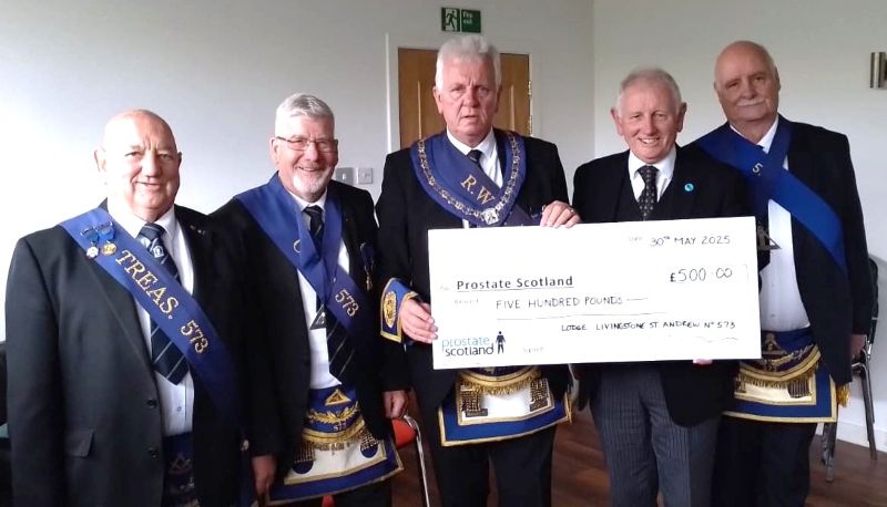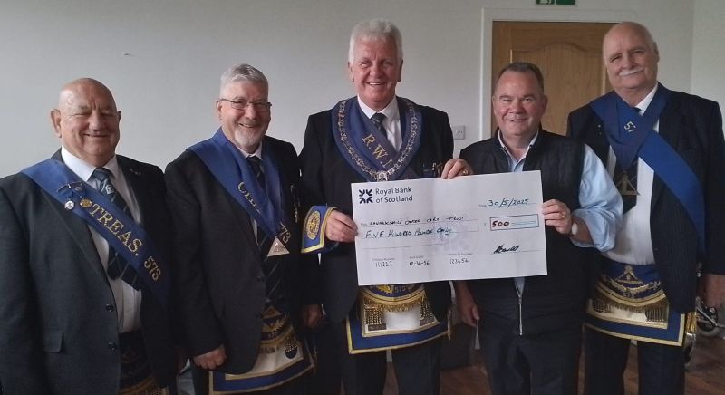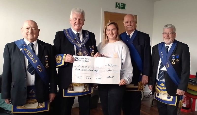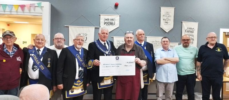 Pictured below are the Master and Lodge members, together with representatives of those Charities.